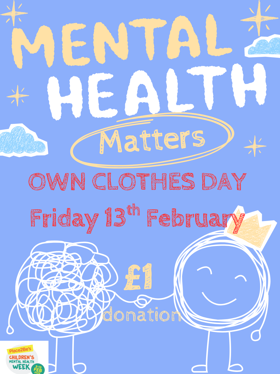 1. Children can wear their own clothes on Friday 13th February for a £1 donation.
