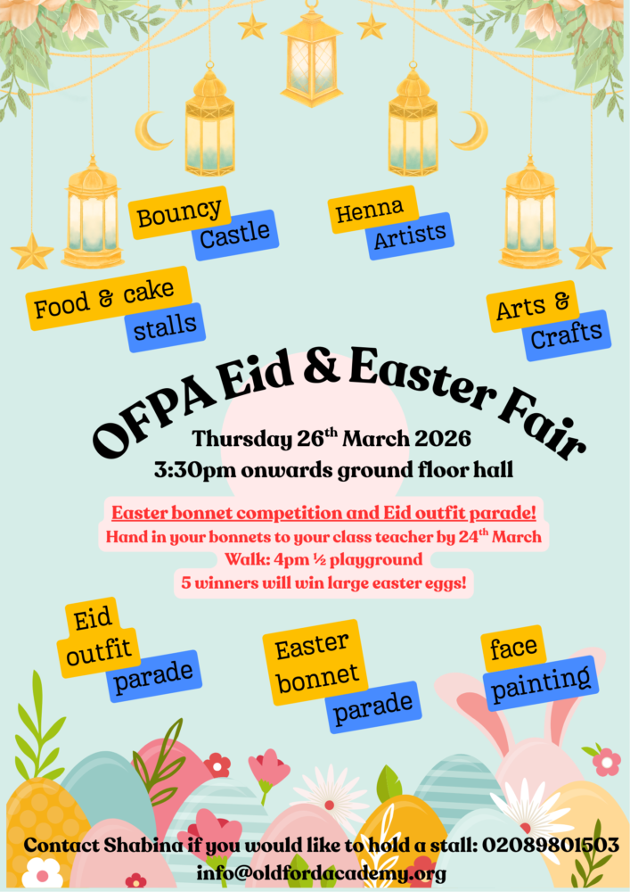 Please see the following information provided by Tower Hamlets. Only Y5 and Y6 pupils are permitted to fast at school during this time and must have written permission in advance from parents/carers. This must be emailed to info@oldfordacademy.org