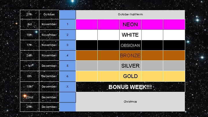 This week we started our new attendance reward project. This will run for the next six weeks until the Christmas holidays.