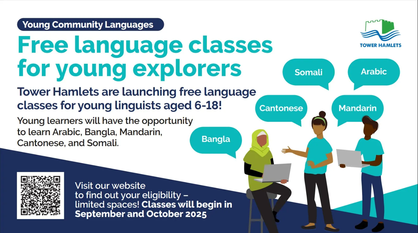 - Young Community Languages- for ages 6-18. These free sessions help children learn their heritage language or an additional community language.